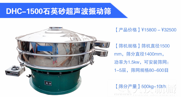 超聲波振動篩常規(guī)型號有:DHC-400、DHC-600、DHC-800、DHC-1000、DHC-1200、DHC-1500、DHC-1800、DHC-2000等。根據每小時10噸的篩分產量,您使用直徑1500mm和直徑1800mm的超聲波振動篩就可以完成產量要求。下面小編就為您重點介紹一下這兩個型號的振動篩。