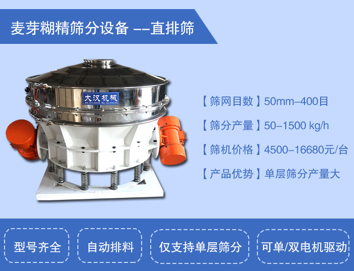 以上就是小編為大家介紹的兩款麥芽糊精振動(dòng)篩(旋振篩和直排篩)希望通過(guò)小編的介紹您可以更深入的了解這兩款設(shè)備,如果您在篩機(jī)選擇上還有什么疑問(wèn),可以致電大漢機(jī)械,我們將安排專業(yè)人士為您做專業(yè)的答復(fù)~