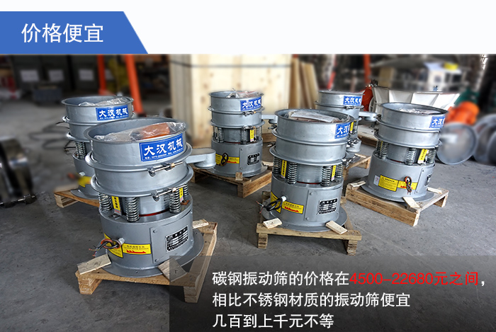 碳鋼振動篩的價(jià)格在4500-22680元之間,相比不銹鋼材質(zhì)的振動篩便宜幾百到上千元不等,除食品、醫(yī)藥、化學(xué)等對于衛(wèi)生要求較高以外的用戶和企業(yè)都可以選擇碳鋼材質(zhì)的振動篩,直線篩因?yàn)樵谛吞柡腕w積上比選擇要多和大,所以就算是和同材質(zhì)的旋振篩相比價(jià)格上也會高出一些。