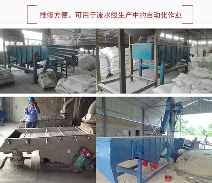 物料從進料口進入1540直線振動篩,篩箱內(nèi)利用振動電機的振動帶動篩網(wǎng)與篩網(wǎng)上的物料進行拋物線式的運動,同時利用篩網(wǎng)網(wǎng)孔的大小不同從而實現(xiàn)物料的分級,篩分的目的與效果。