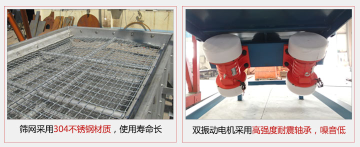 2,雙振動(dòng)電機(jī)采用高強(qiáng)度耐震鑄鐵軸承,使用壽命長,噪音低,易保養(yǎng)。