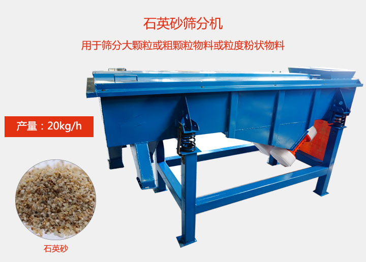石英砂篩分機(jī)利用振動(dòng)電機(jī)激振作為振動(dòng)源,使物料在篩網(wǎng)上被拋起,同時(shí)向前作直線運(yùn)動(dòng),物料從給料機(jī)均勻地進(jìn)入篩分機(jī)的進(jìn)料口,通過多層篩網(wǎng)產(chǎn)生數(shù)種規(guī)格的篩上物、篩下物、分別從各自的出口排出