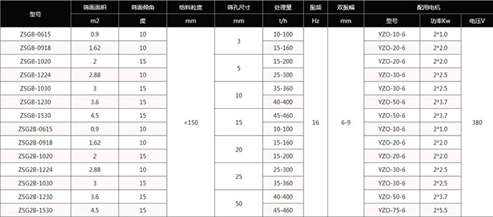 礦用振動(dòng)篩結(jié)構(gòu)和技術(shù)參數(shù)表
